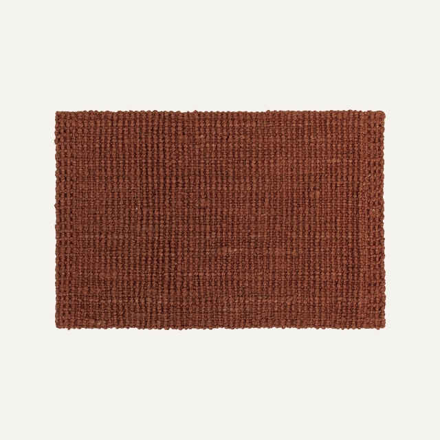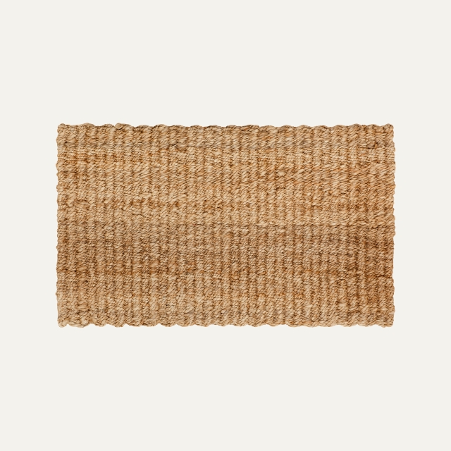 Handspunnet jutegarn vävs av skickliga indiska hantverkare till en vacker, slät och slitstark dörrmatta. Undersida bestruken med naturlatex som halkskydd. Passar bra för dubbeldörr.