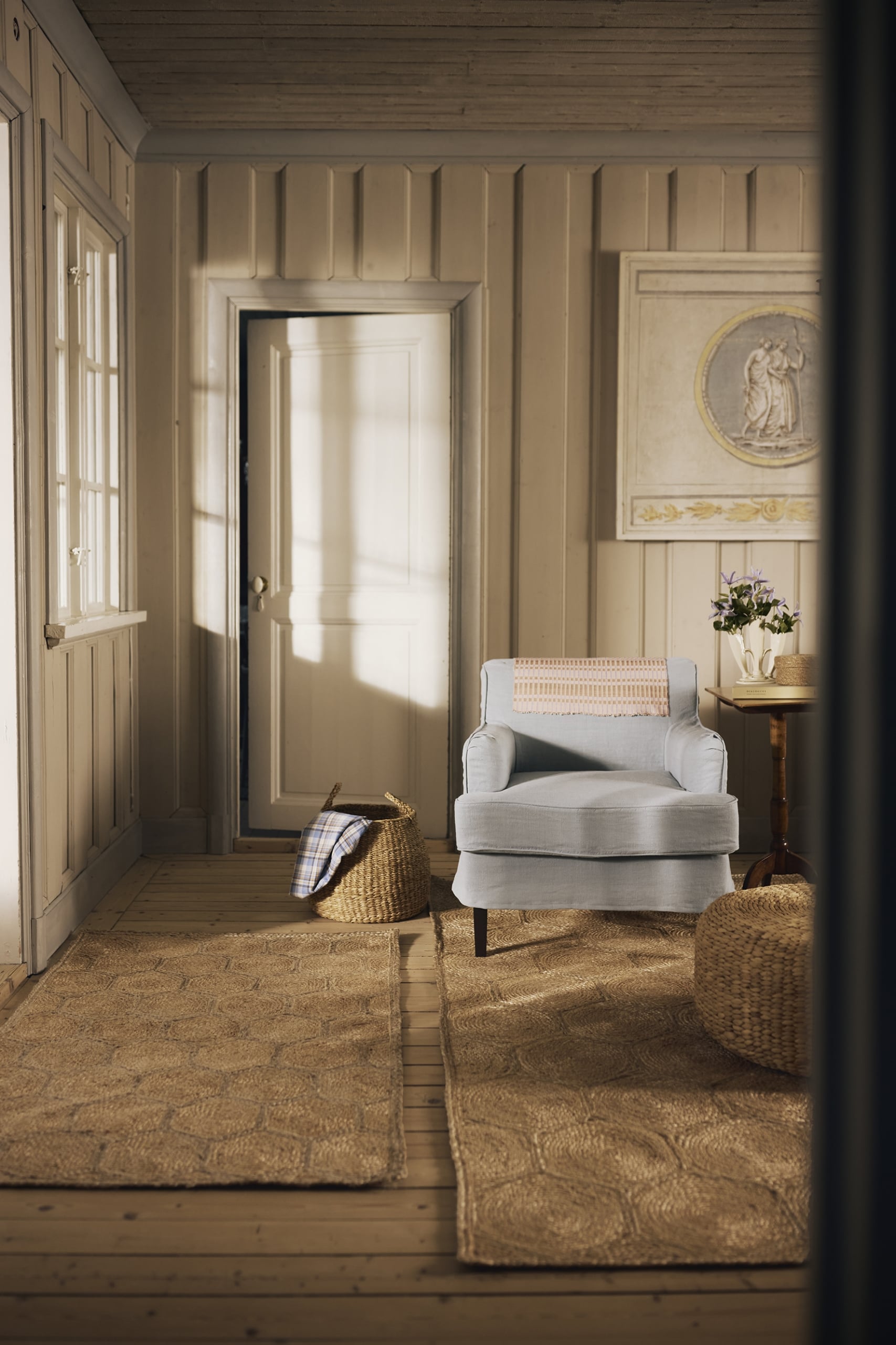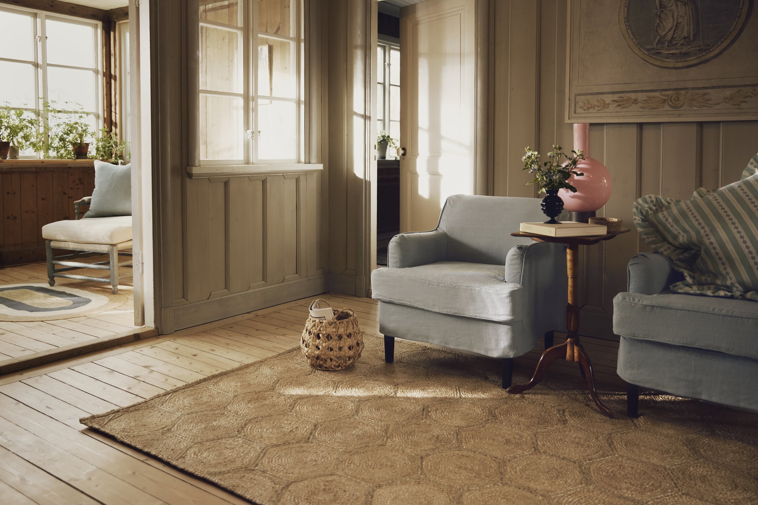 Blå/natur/vit oval matta av jute Elin 150x92cm